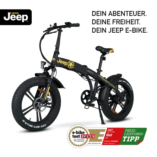 Jeep Fold Fat E-Bike FR 7020 – Faltbares E-Fatbike 20 Zoll mit 7-Gang Shimano Kettenschaltung, Federgabel – 250W Heckmotor – Leistungsstarker 36V Akku bis 110 km Reichweite – StVZO Zulassung – Schwarz