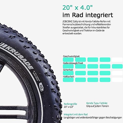 Jobobike Eddy X ist ein absoluter Allrounder, ob eine Tour durch die Stadt oder ein kleiner Offroadtripp Eddy findet in fast jeder Situation eine Anwendung. Durch die Eigenschaft als Klappfahrrad ist das Fahrrad auch leicht überall mit zu nehmen. Dennoch ist es ein E-Bike undund liefert volle Leistung um Sie bei ihrem Fahrerlebnis zu unterstützen.