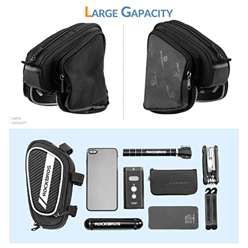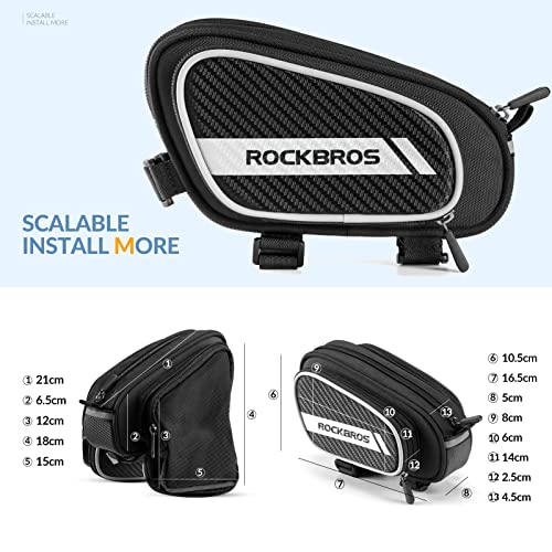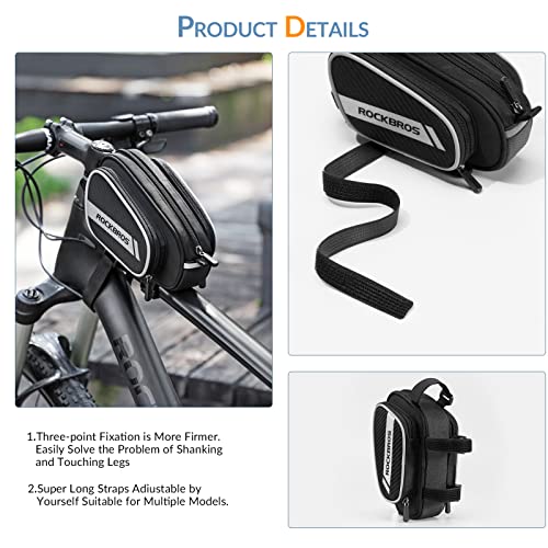 ❤ 3 Klettverschlüsse zu befestigen: ROCKBROS Oberohrtasche verwendet 3 länge Klettverschlüsse fest zu befestigen. Es kann sich leicht montieren und demontieren werden. Wenn die Klettverschlüsse zu lang sind, können Sie sie nach Bedarf ausschneiden.