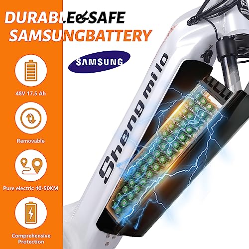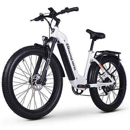 Shengmilo E Bike Elektrofahrrad Herren Damen 26 Zoll E-Mountainbike E-Bike 48V 17.5Ah Akku 7 Gang Schaltwerk Elektrisches Fahrrad mit Bafang motor, Fat Tire mechanische Scheibenbremsen, Hinterer Gepäckträger und Alu-Rahmen